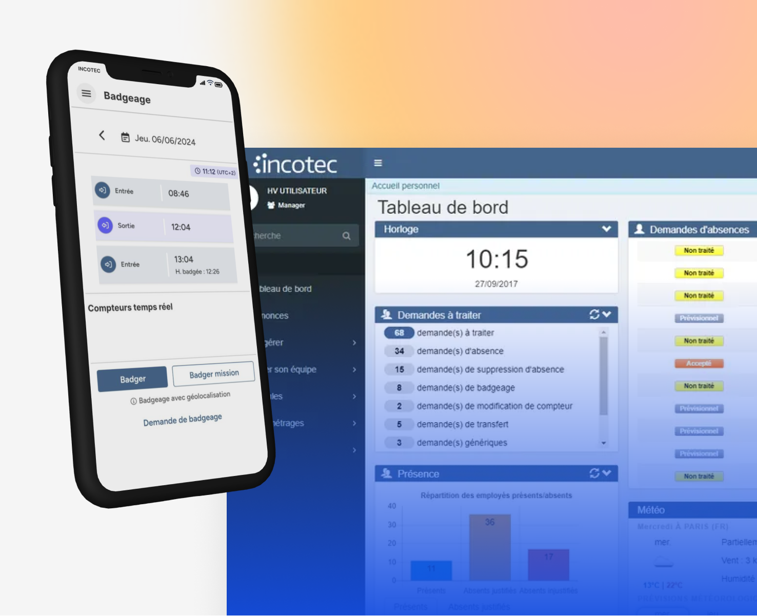 Pilotez les horaires, absences et activités de vos collaborateurs grâce à une solution logicielle complète et connectée. Gagnez en visibilité, fiabilité et sérénité au quotidien.