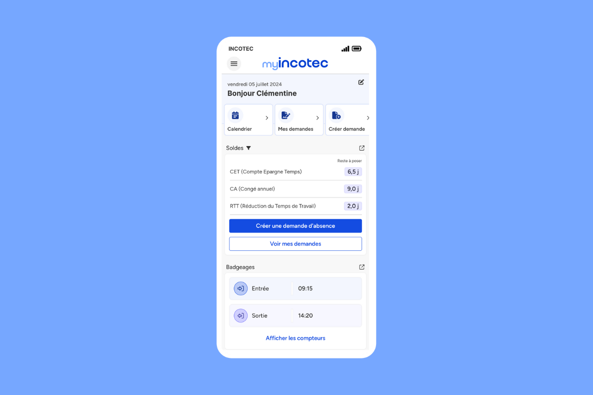 Grâce à myIncotec, les équipes gagnent en autonomie et en transparence sur leur temps de travail, tout en réduisant les échanges avec les services RH.