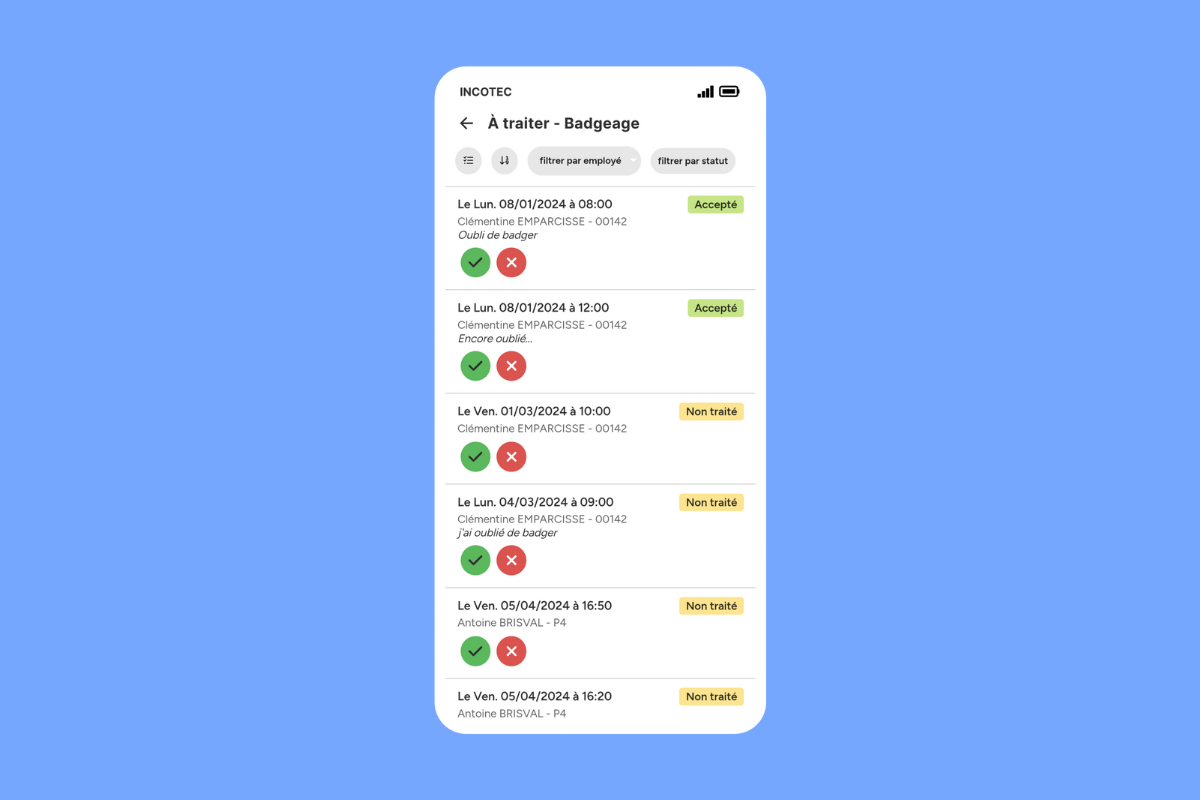 - Accès aux anomalies, notamment en cas d’absence injustifiée, oubli de badgeage, etc ;